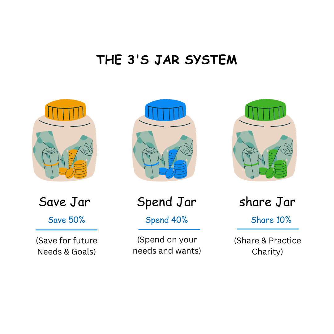 One of the easiest and most effective ways to teach young children about money is through the jar system. This method encourages kids to divide any money they receive into three jars: Save, Spend, and Share.